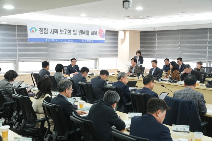 (사진 출처 : 가평군청) - 청렴도 우수기관 재달성 의지… 간부공무원 청렴교육 병행 가평군은 군수 주관으로 16일 간부공무원들이 참석한 가운데 ‘2026년도 반부패 청렴정책 추진 계획 보고회’를 열고 청렴도 향상을 위한 추진 방향과 주요 과제를 공유했다. 이번 보고회는 청렴도 우수기관 지위를 유지하고 조직 전반에 청렴문화를 확산하기 위해 마련됐다. 회의에서는 2025년도 종합청렴도 평가 결과를 분석하고 취약 분야의 원인을 진단한 뒤 2026년도 개선 방향을 논의했다. 특히 청렴도 평가 항목 가운데 ‘청렴노력도’ 지표의 평가 체계와 주요 평가항목을 비교‧분석하며 올해 중점적으로 관리해야 할 사항을 점검했다. 군은 올해 청렴도 우수기관 재달성을 목표로 핵심 추진과제를 선정하고 부서별 청렴시책 추진 방향과 연간 추진 일정을 공유했다. 이와 함께 부서 간 협력이 필요한 사항도 함께 안내하며 전 부서 차원의 청렴 정책 추진을 강조했다. 가평군은 앞으로 청렴 소통 확대와 부서 중심의 청렴 시책 추진 등을 통해 조직 전반에 청렴문화를 확산해 나갈 계획이다. 보고회 종료 후에는 간부공무원을 대상으로 반부패‧청렴교육도 실시했다. 이번 교육은 간부공무원의 청렴 리더십을 강화하고 공직사회 부패 예방에 대한 인식을 높이기 위해 마련됐다. 군 관계자는 “청렴은 특정 부서만의 업무가 아니라 모든 공직자가 함께 실천해야 할 기본 가치”라며 “지속적인 교육과 소통을 통해 실효성 있는 청렴 시책을 추진하고 군민이 신뢰하는 청렴한 행정을 구현해 나가겠다”고 말했다. 가평군청 2026년 3월 17일 보도자료 바로가기
