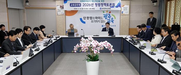(사진 출처 : 광주광역시교육청) - 청렴도 저해 요인 분석…종합청렴도 향상 방안 논의 광주시교육청(교육감 이정선)은 16일 본청 상황실에서 교육감, 부교육감, 본청 국·과장, 교육지원청 교육장 등 40여 명이 참석한 가운데 ‘청렴정책 토론회’를 개최했다. 이번 토론회는 청렴도 평가 결과와 심층면담, 구성원 설문조사 등을 토대로 분석한 청렴도 저해 요인을 공유하고 종합청렴도 향상을 위한 대응 전략을 논의하기 위해 마련됐다. 토론회는 부패취약분야 담당 부서가 분야별 청렴도 향상 대책을 발표하고 참석자들이 관련 의견을 제시하는 순으로 진행됐다. 특히 청렴거버넌스 구축, 전체 구성원들의 청렴 주체의식 강화 등 개선 방안을 모색했다. 또 ▲운동부 암행감찰 실시 ▲인사관리 맞춤형 상담 강화 ▲계약관리 해피톡조사 등 종합청렴도 향상 대책을 제안했다. 시교육청은 토론 내용을 토대로 청렴도 향상을 위한 정책을 추진할 계획이다. 이정선 교육감은 “청렴은 교육행정에 대한 신뢰의 출발점”이라며 “간부 공무원부터 솔선수범하고 현장의 의견을 반영해 청렴도가 높아지도록 최선을 다하겠다”고 말했다. 광주광역시교육청 2026년 3월 16일 보도자료 바로가기